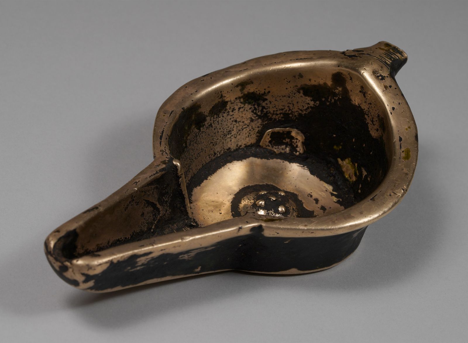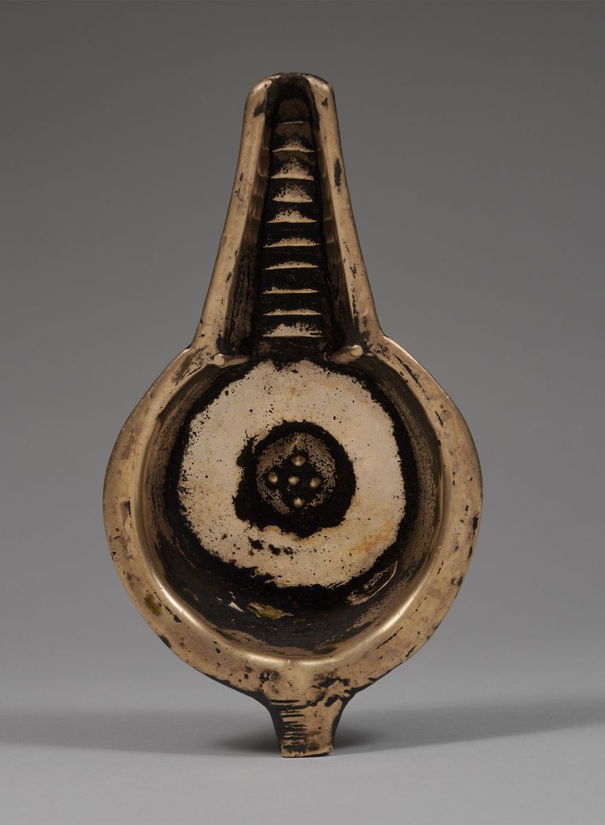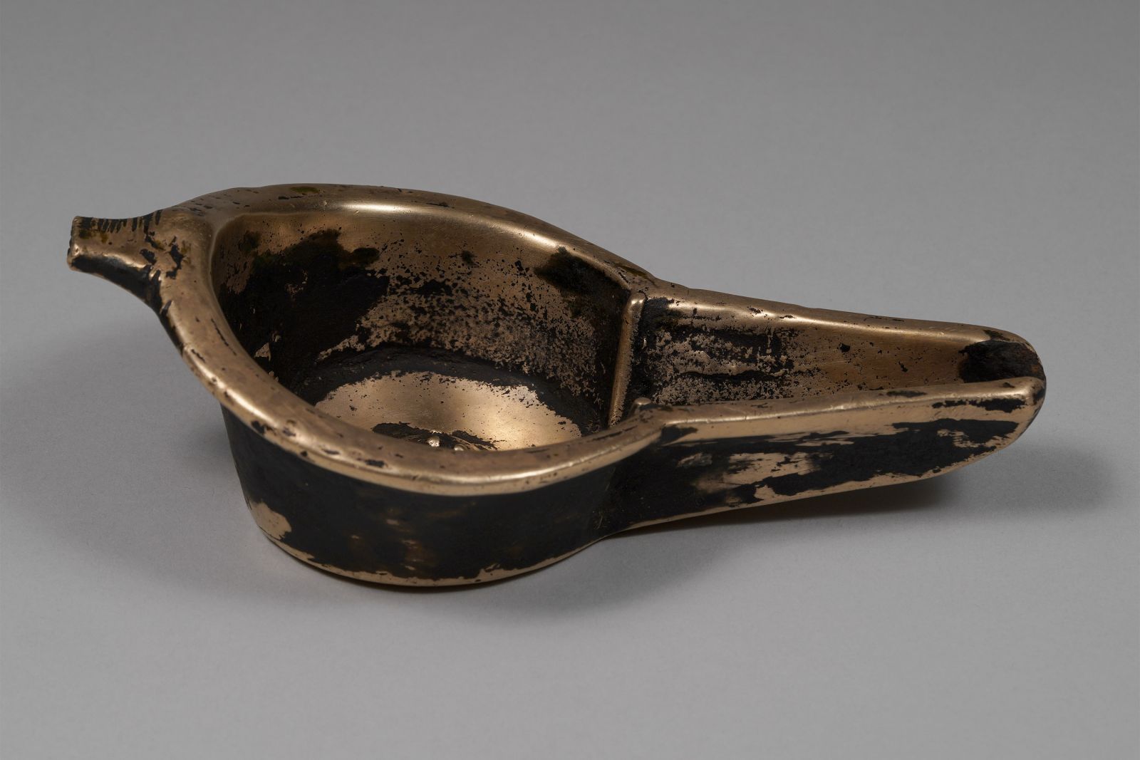 An oil lamp of Yoni form, symbol of divine feminine energy. Ritually illuminated for spiritual guidance.