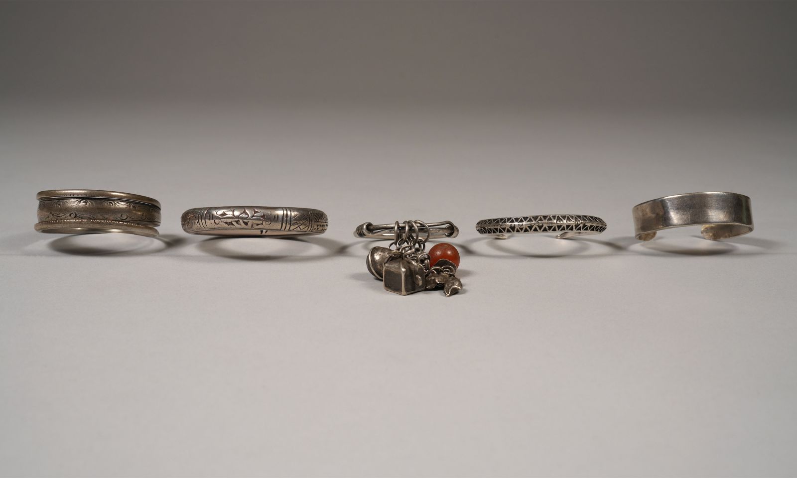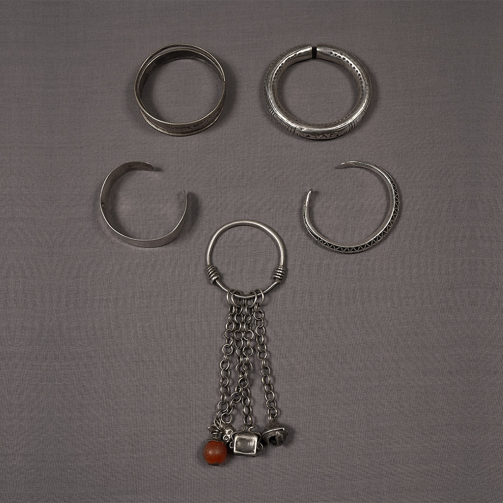 Collection of 5 Baby Bracelets 3 from Laos, 2 from South China Ca. 1920SilverVarious sizesInventory # 105553$1,300
