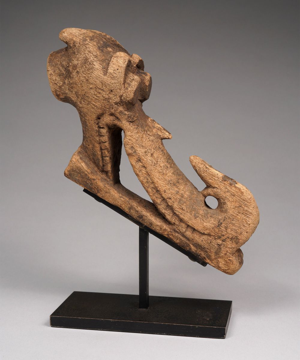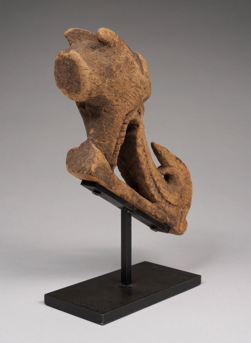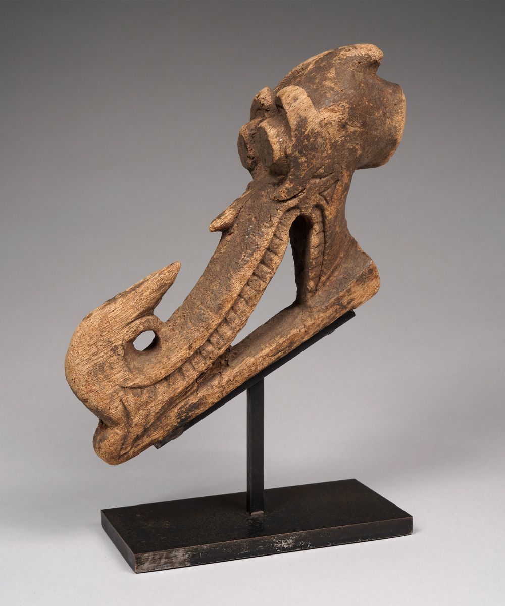 Vigorously carved head of an Aso, a mythological beast that was kept as an inspired template for future work.